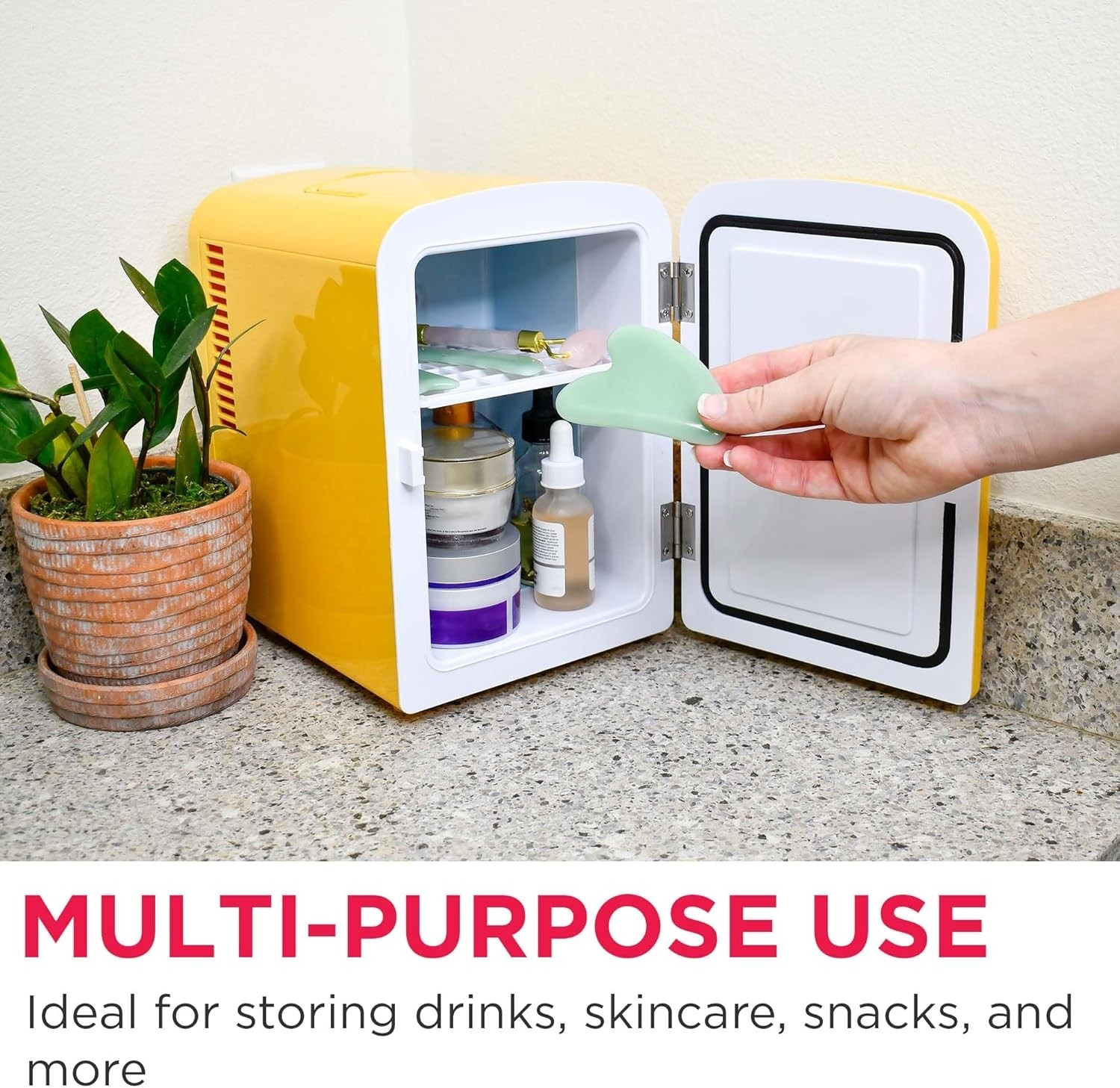 - Store snacks, beverages, and skincare products