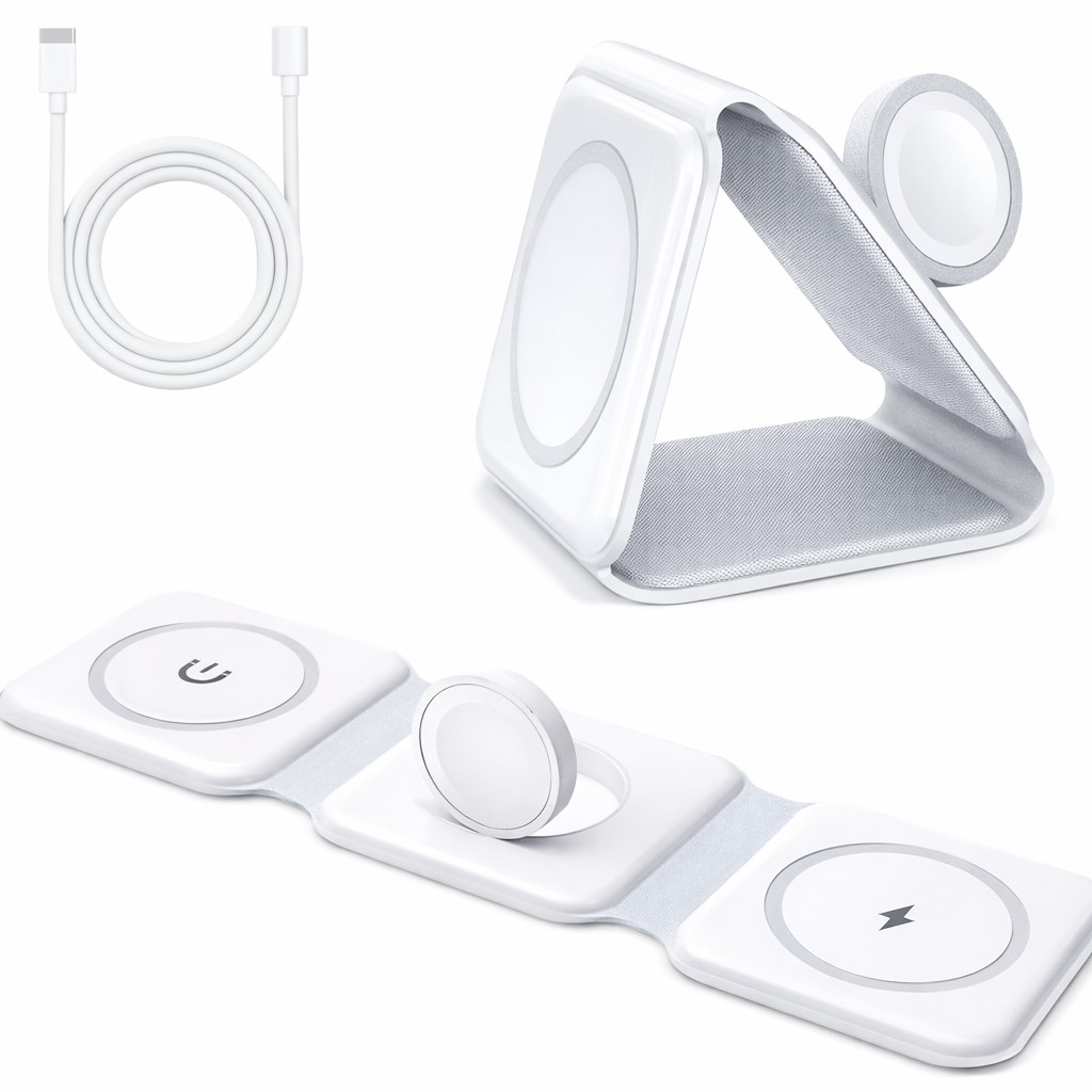 - 3 in 1 multifunctional charging station: Phone, earphones, watch