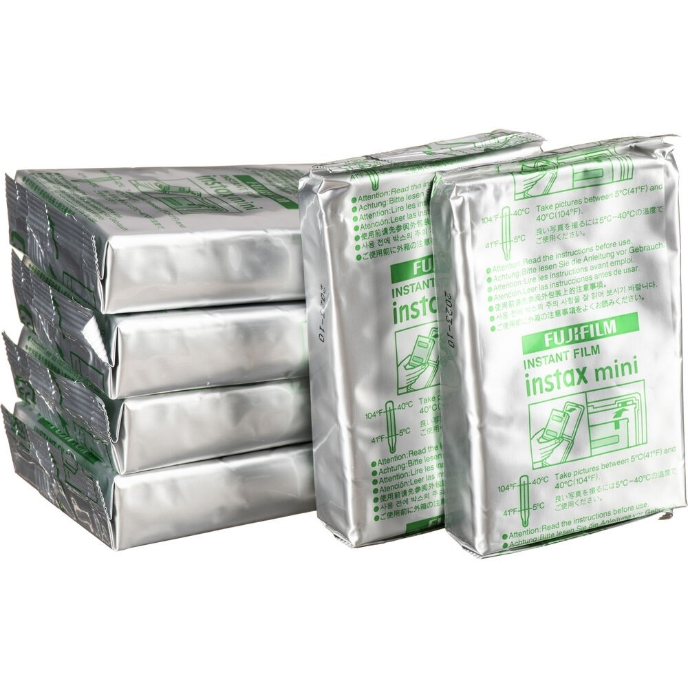 This six pack of FUJIFILM INSTAX MINI Value Pack Instant Film contains 60 sheets of instant color film that is compatible for use with the INSTAX MINI series of cameras. This film features vivid color reproduction with natural skin tones when used under daylight (5500K) or electronic flash lighting conditions. A refined grain structure provides high image sharpness and clarity as well as a versatile ISO 800 film speed for use with a wide variety of subjects. Each sheet of film produces a 2.4 x 1.8" glossy image area with a simple white border. Quick, instant developing is possible in temperatures between 41-104°F.