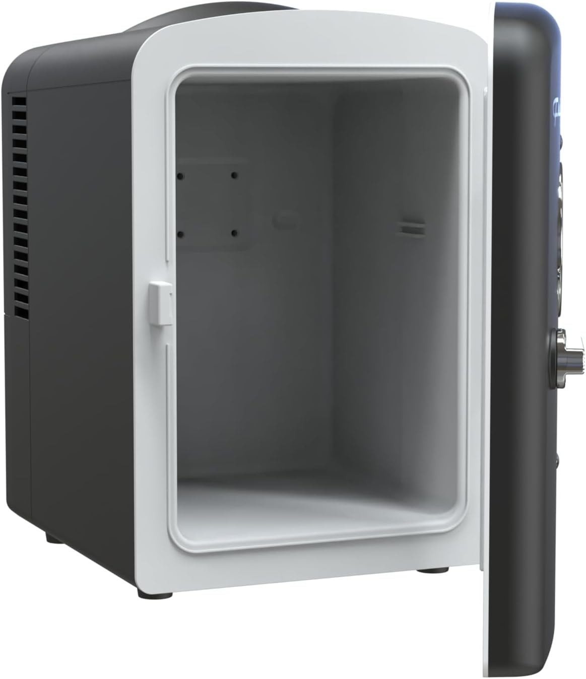 4-liter capacity chills six 12 oz. soda cans. The 5"x5"x7.5" interior includes a removable shelf that offers a variety of storage options for small items such as yogurt, fruit, snacks, baby bottles and more.