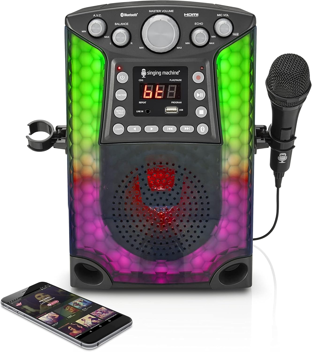 The Singing Machine Bluetooth CD+G Karaoke Sound System with LED Lights, SML633, Black Description: